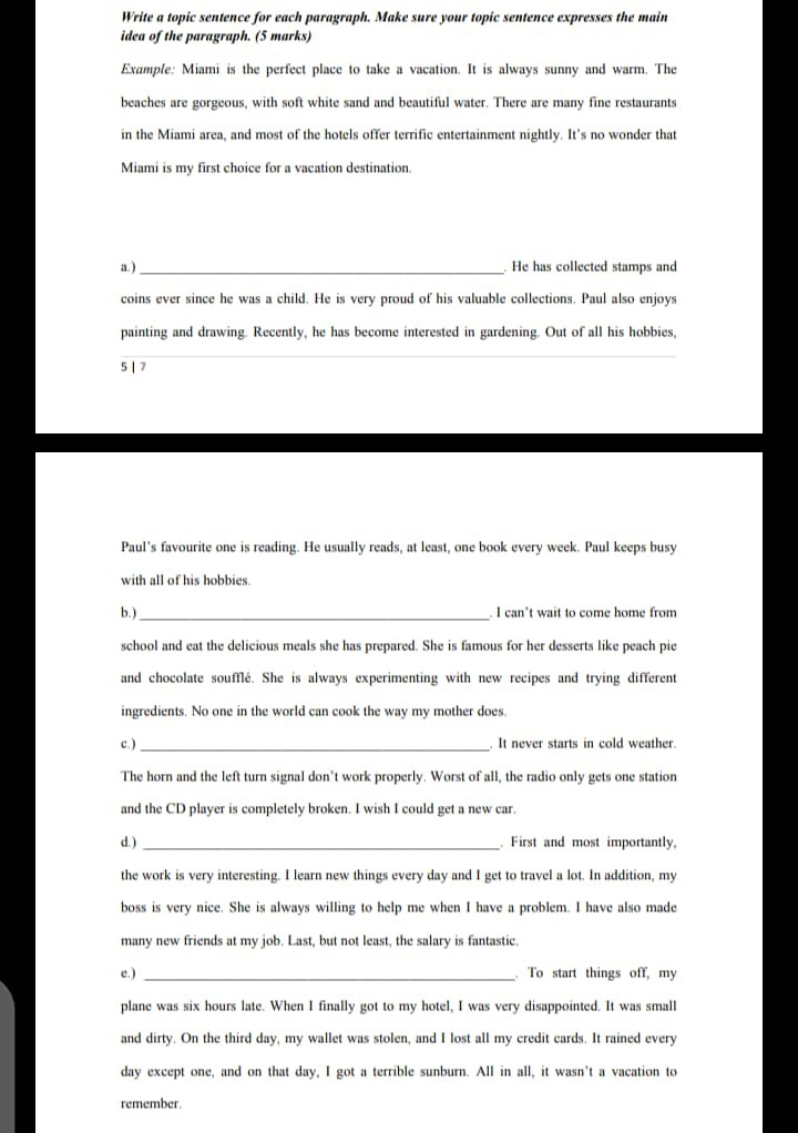Solved: Write A Topic Sentence For Each Paragraph. Make Su… | Chegg.com
