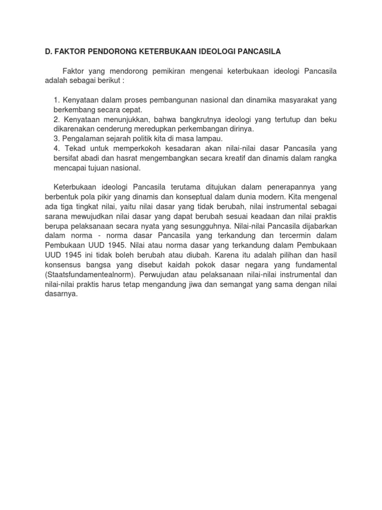 Asfan.docx - B Faktor Pendorong Keterbukaan Ideologi Pancasila Faktor yang mendorong pemikirian keterbukaan ideologi Pancasila adalah sebagai berikut | Course Hero