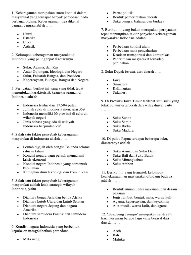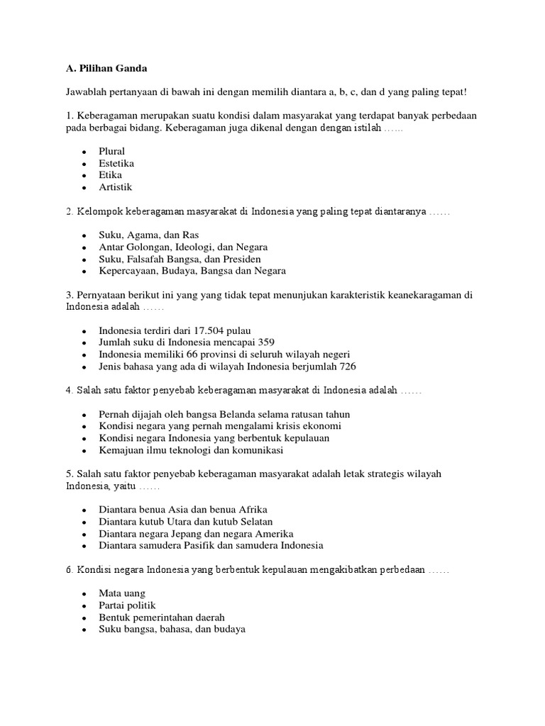 Soal les materi keberagaman