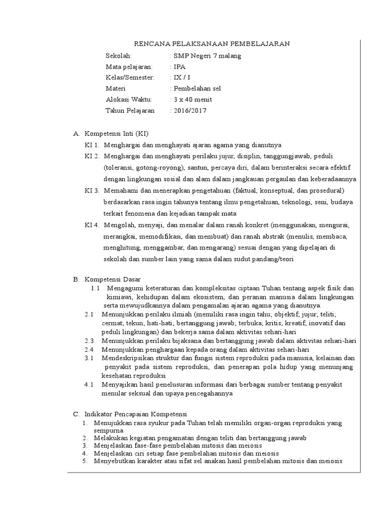RENCANA PELAKSANAAN PEMBELAJARAN pembelahan sel