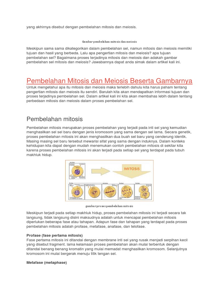 contoh gambar pembelahan mitosis dan meiosis beserta penjelasannya …