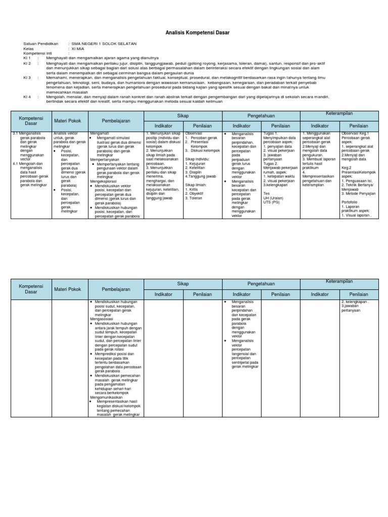 Analalisis SKL KI KD Kurikulum 2013 Fisika XI