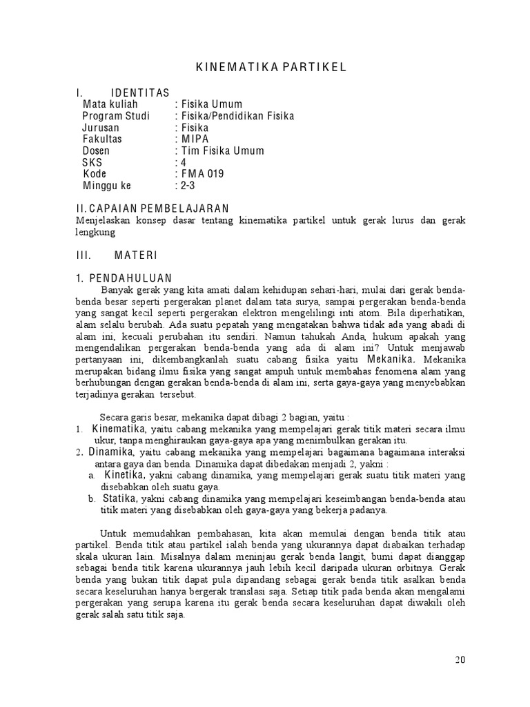 Fisika Umum (MA301) - file.upi.· dengan jarak yang ditempuh. Sebuah benda (misal mobil) bergerak - [PDF Document]