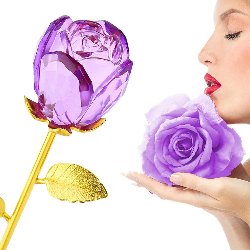 ANGGREK Artificial Crystal Rose,24K Gold Plated Long Stem …
