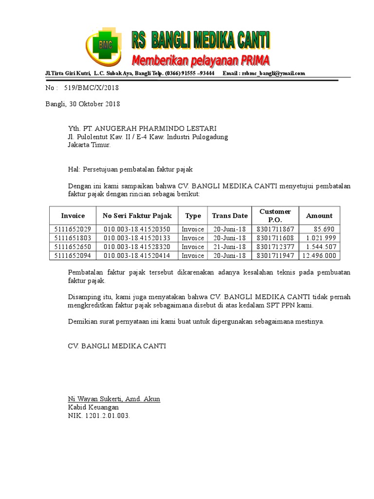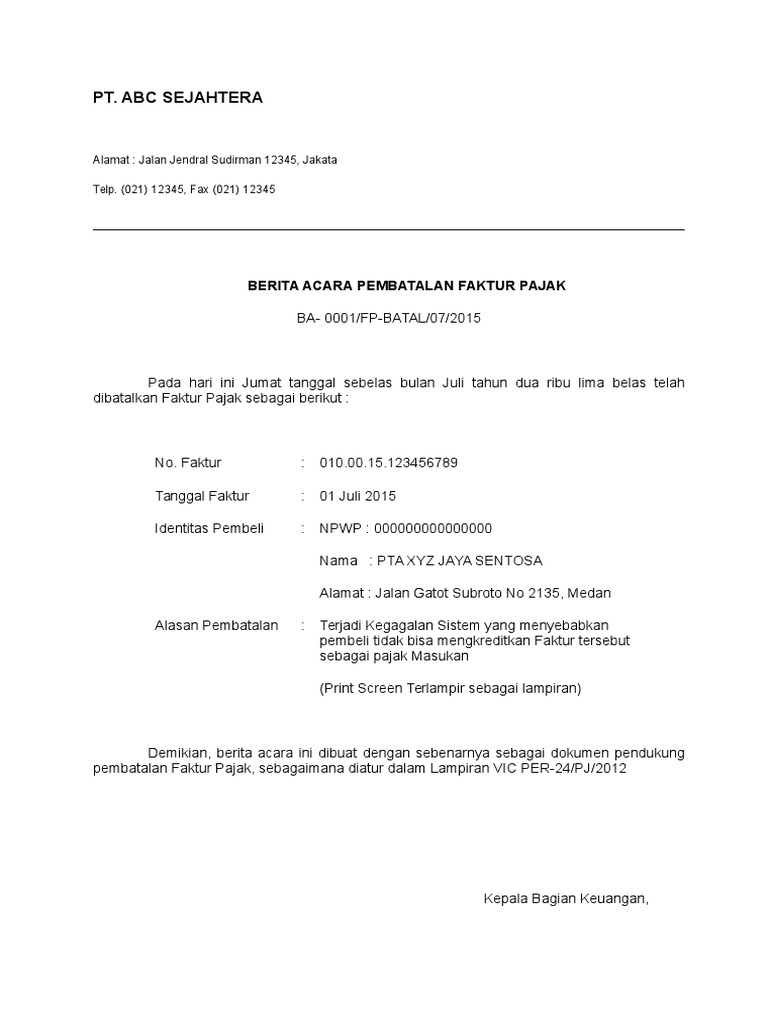 Contoh Surat Pembatalan Faktur Pajak Doc | Surat, Tanggal, Menyerah