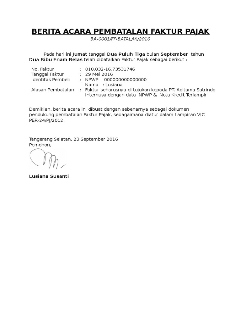 Nice Contoh Surat Pembatalan Faktur Pajak 41 Di Ide Menulis …