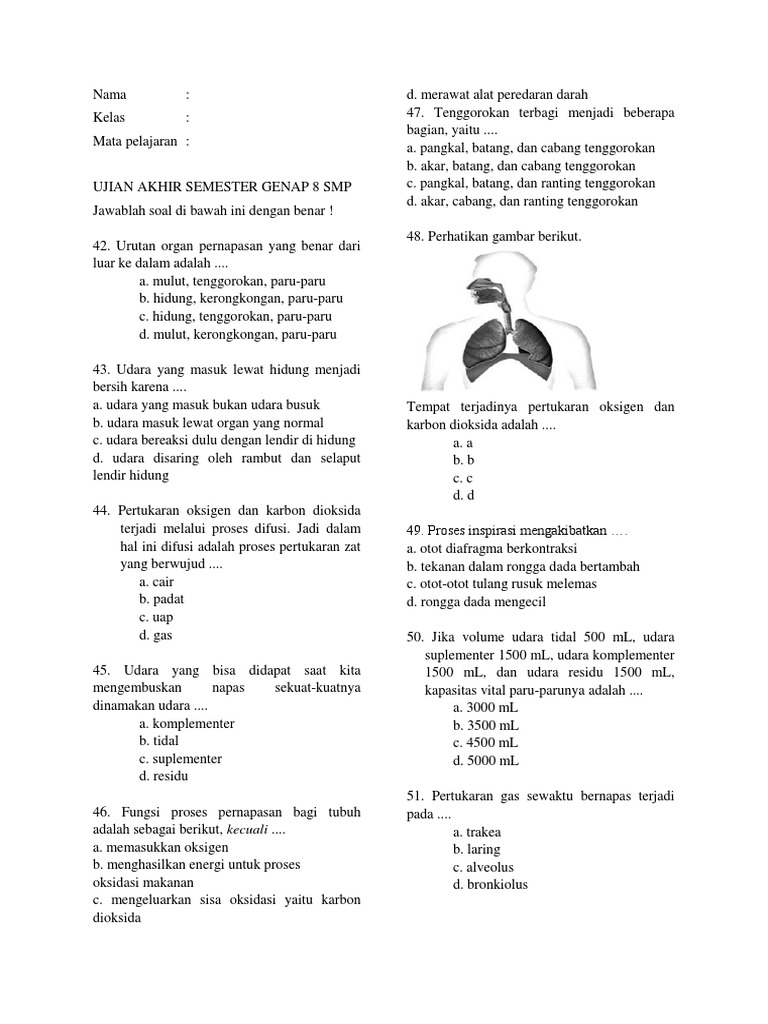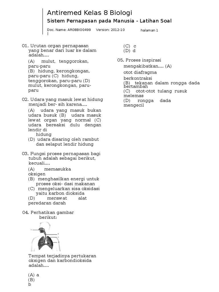 Soal Latihan Biologi SMP [SELESAI] - Bab 12. Sistem Pernapasan …