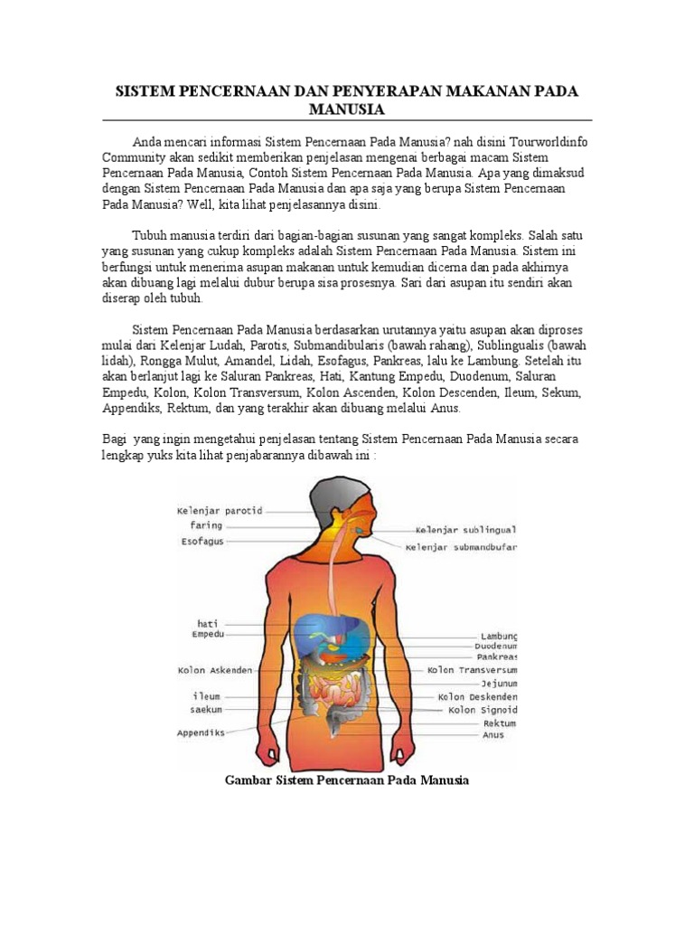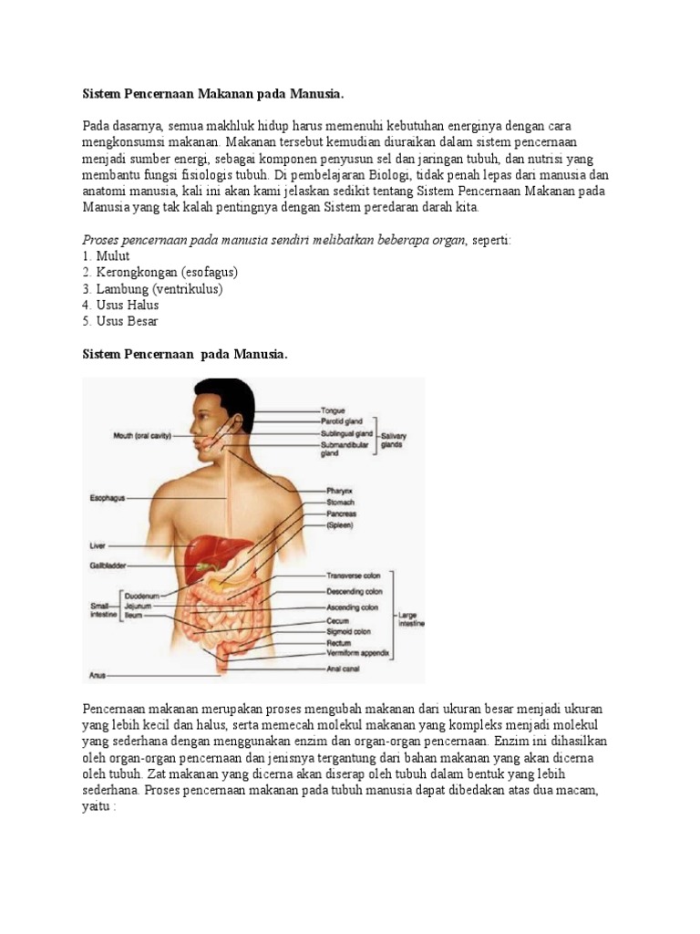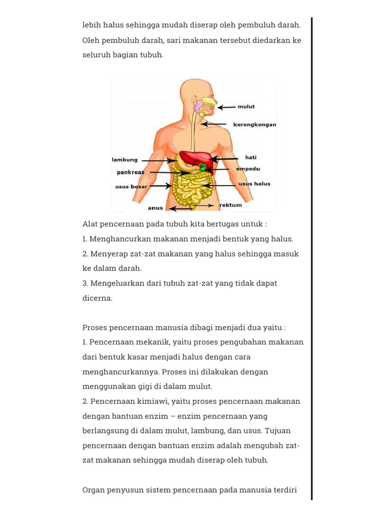 Sistem Pencernaan Makanan Pada Manusia Terdiri Dari Beberapa Organ - [DOCX Document]