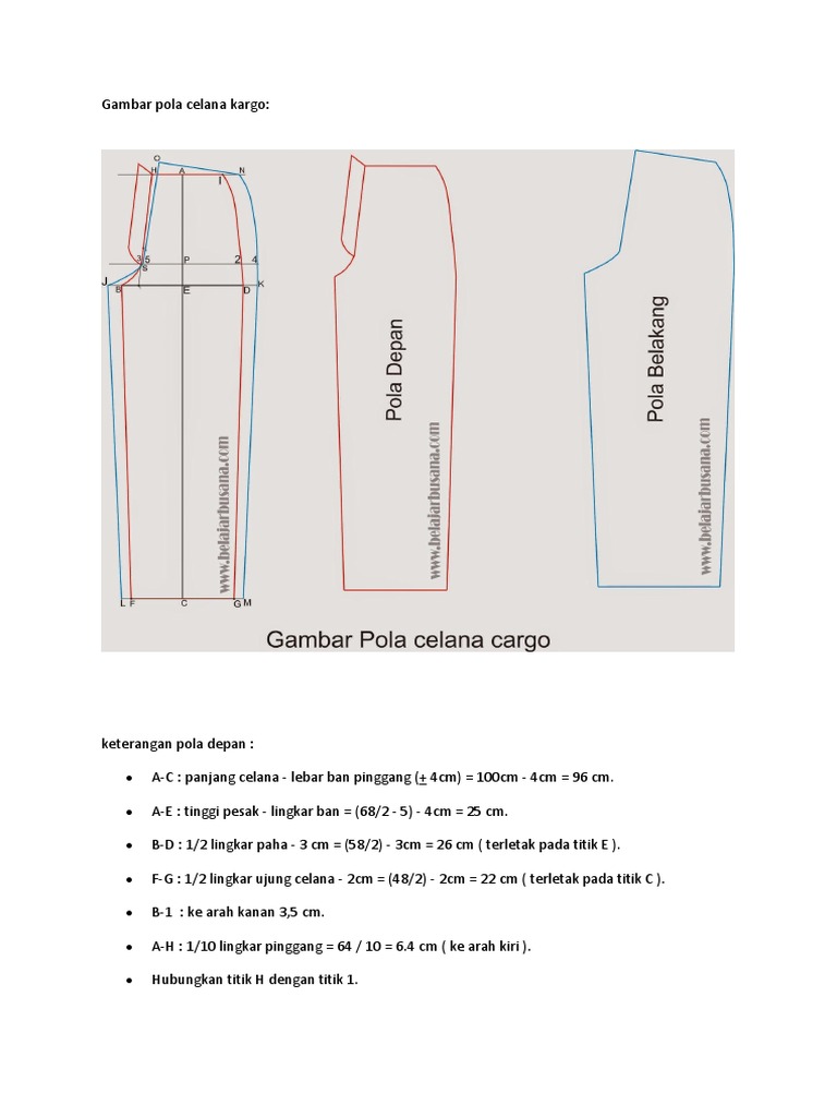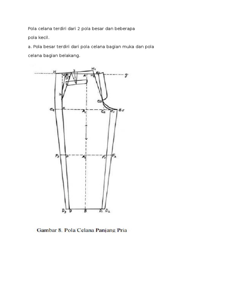 gambar pola celana pria dan keterangannya