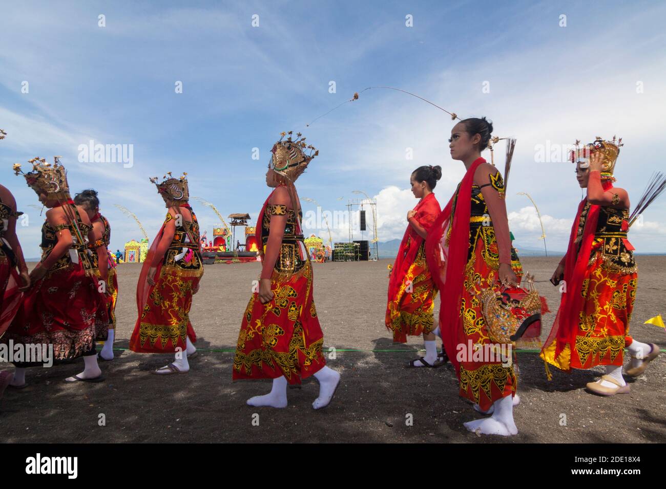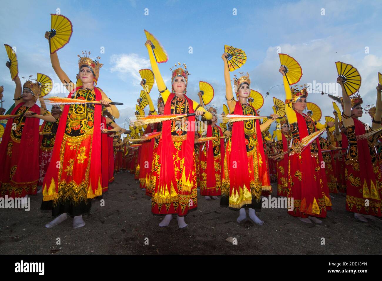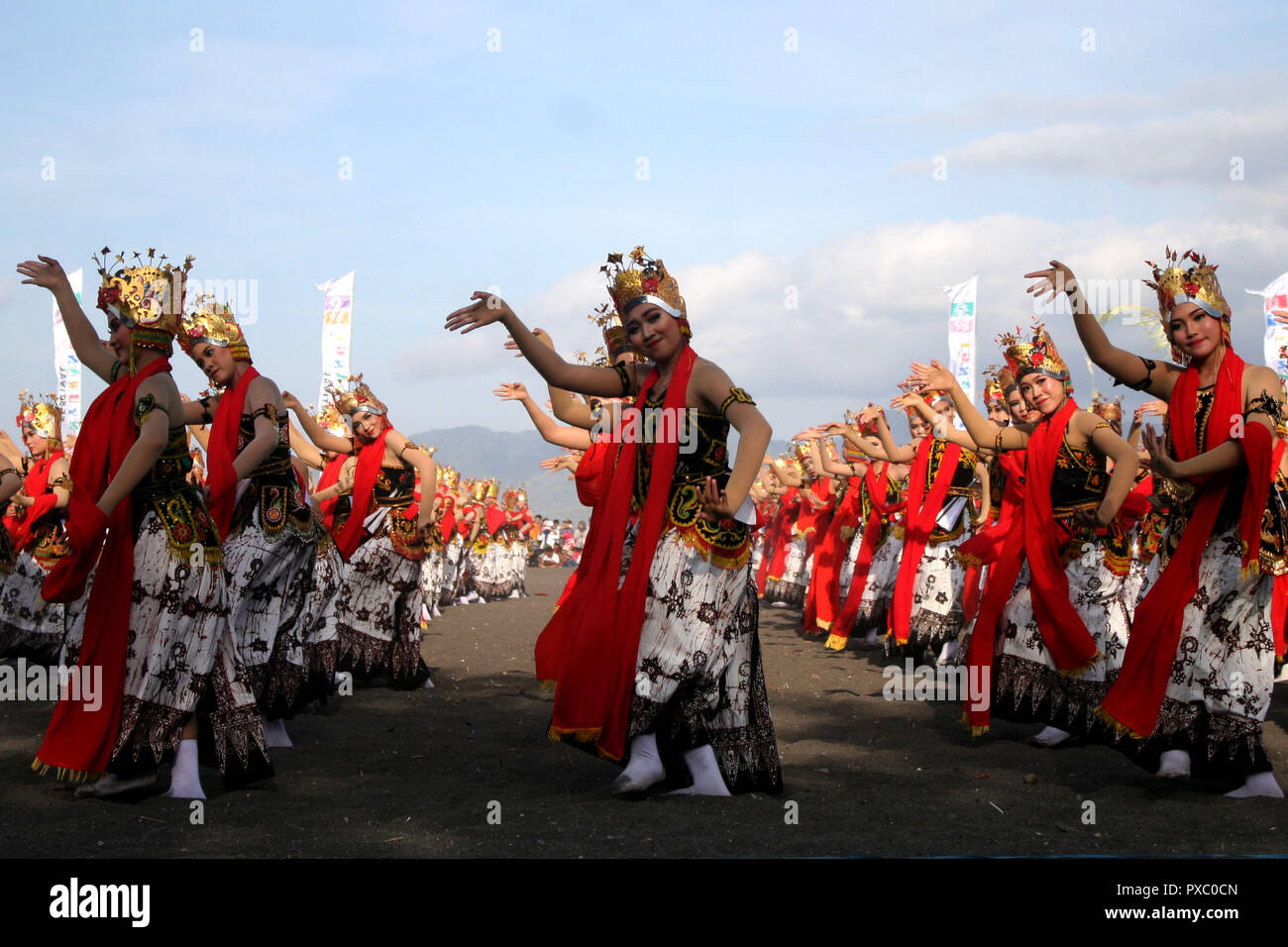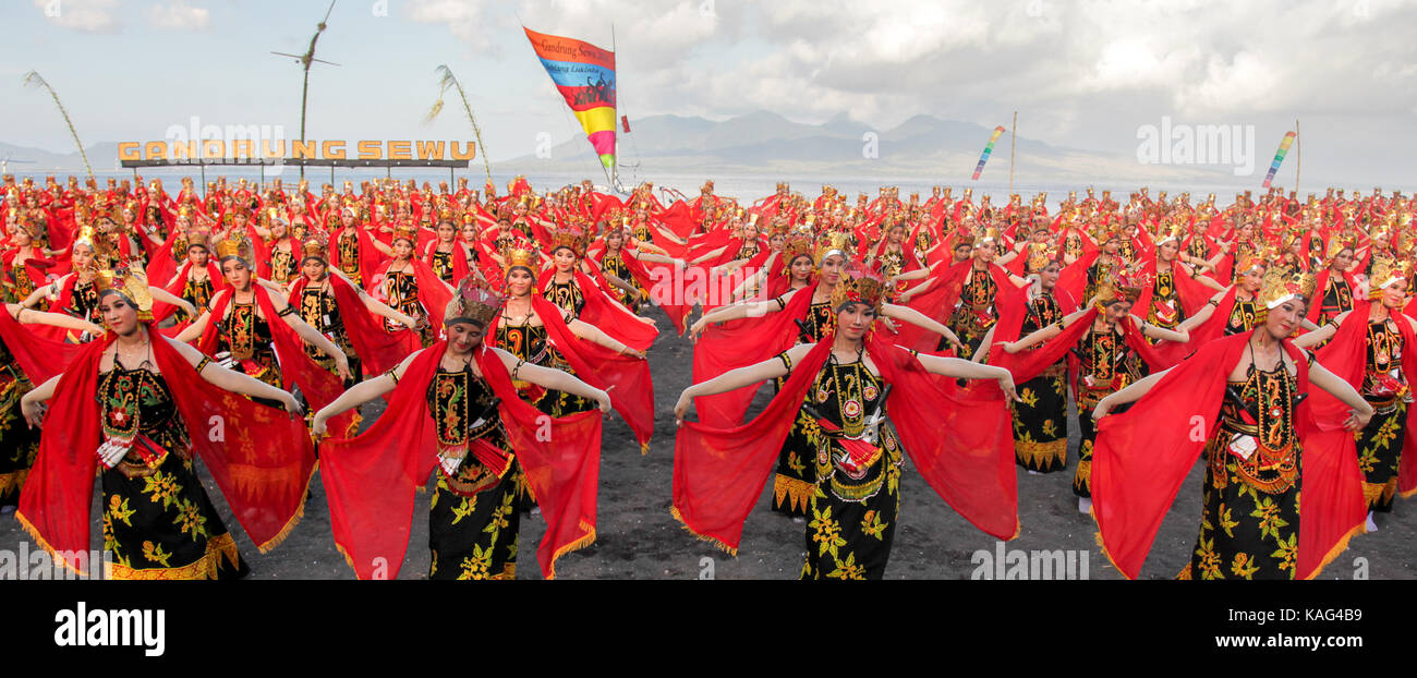 Thousands of pretty dancers in costumes perform Gandrung dance at …