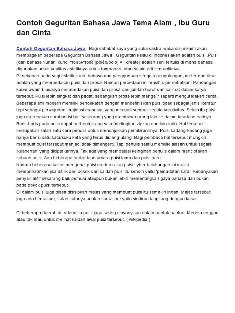 Contoh Geguritan Bahasa Jawa Tentang Guru - Barisan Contoh
