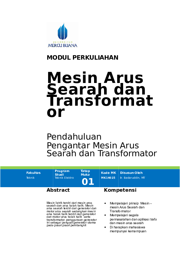 DOC) Mesin Arus Searah dan Transformato r Fakultas Program Studi …