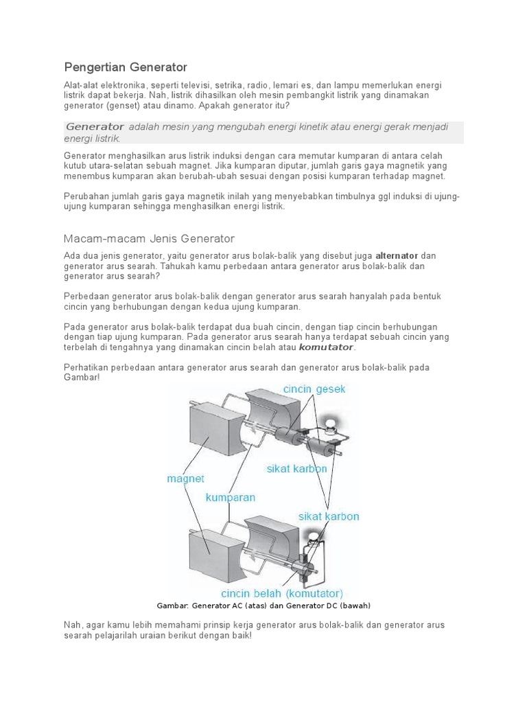 jelaskan prinsip kerja generator arus searah. - Brainly.co.id