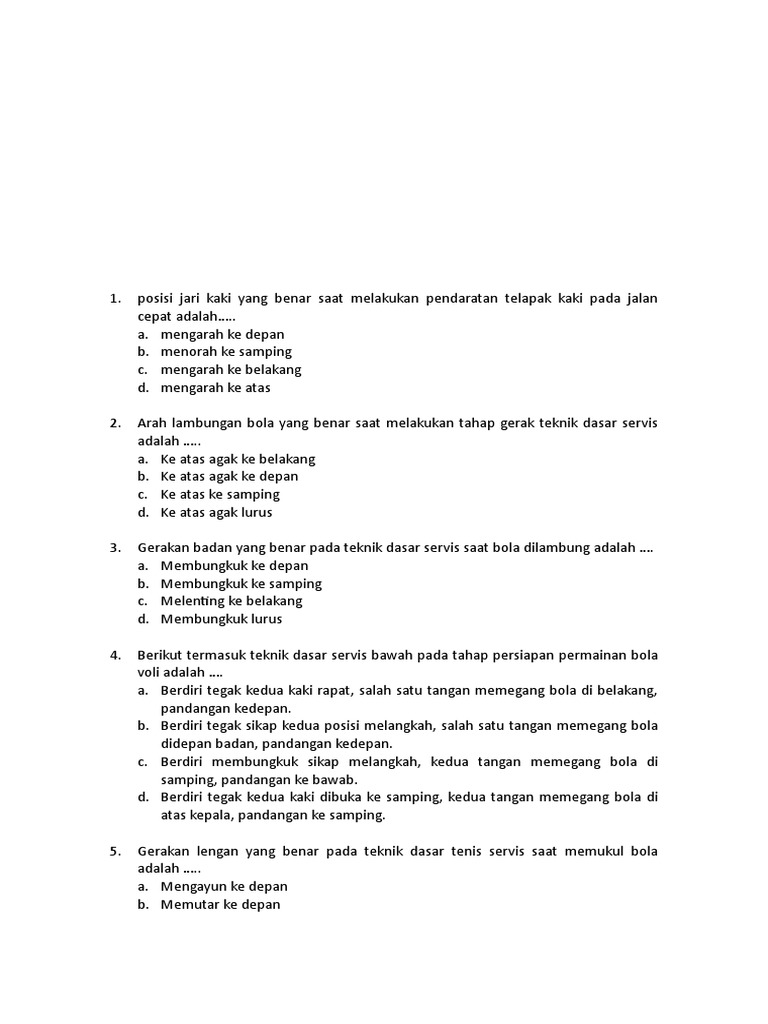 1. Gerakan badan yang benar pada teknik dasar servis atas saat bola dilambungkan adalh… - Brainly.co.id