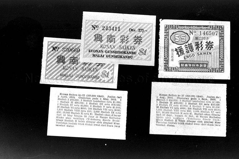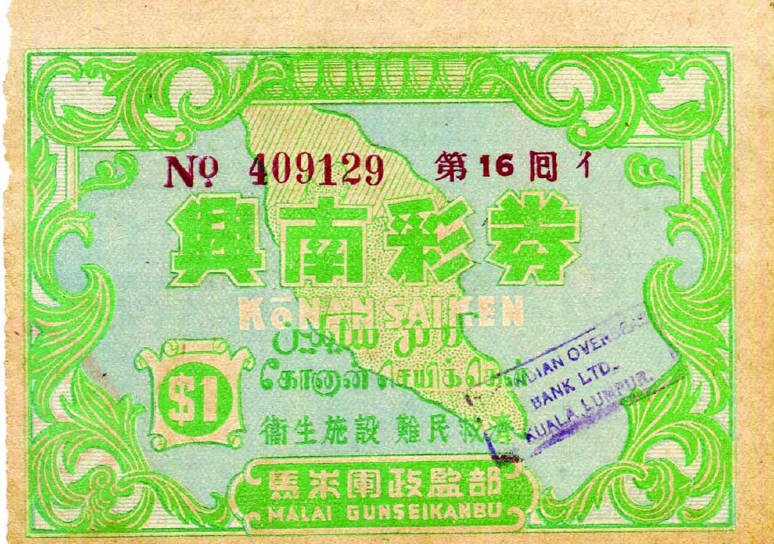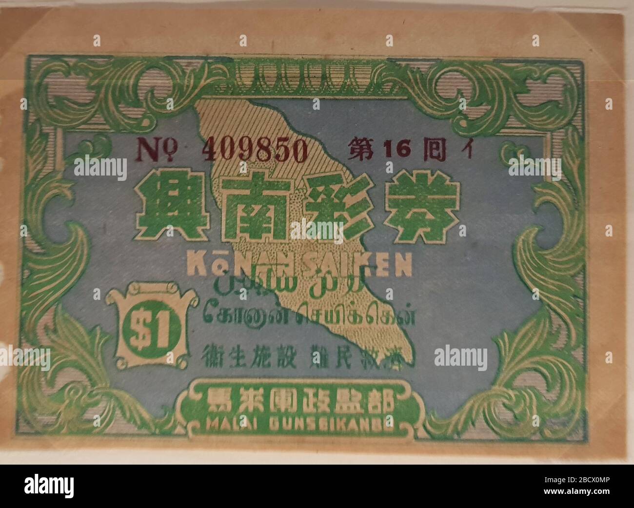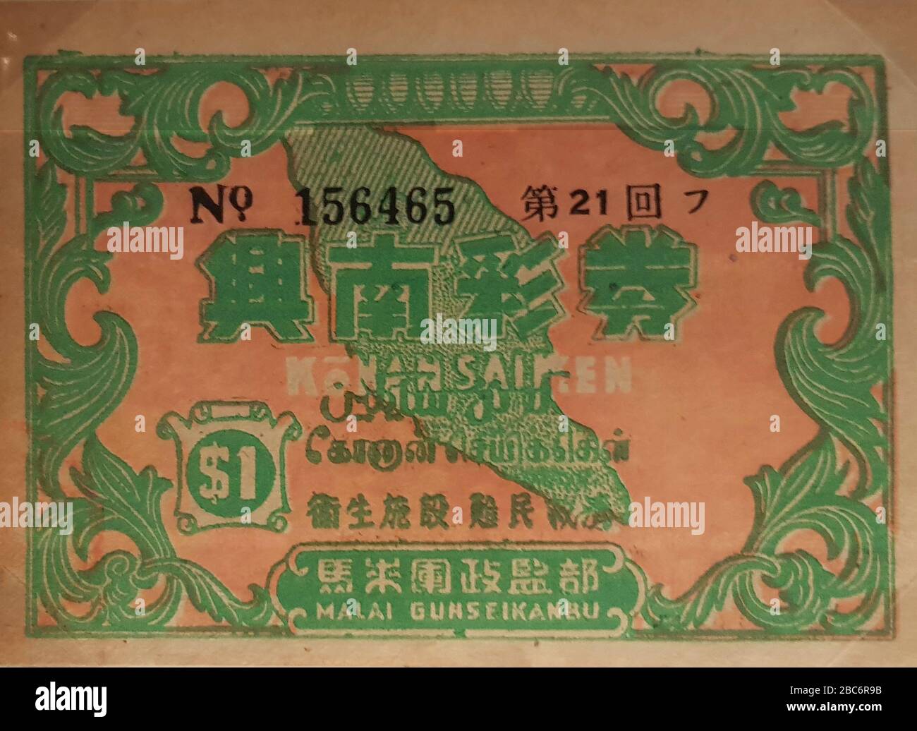 Lottery ticket sold during the Japanese occupation of Singapore …