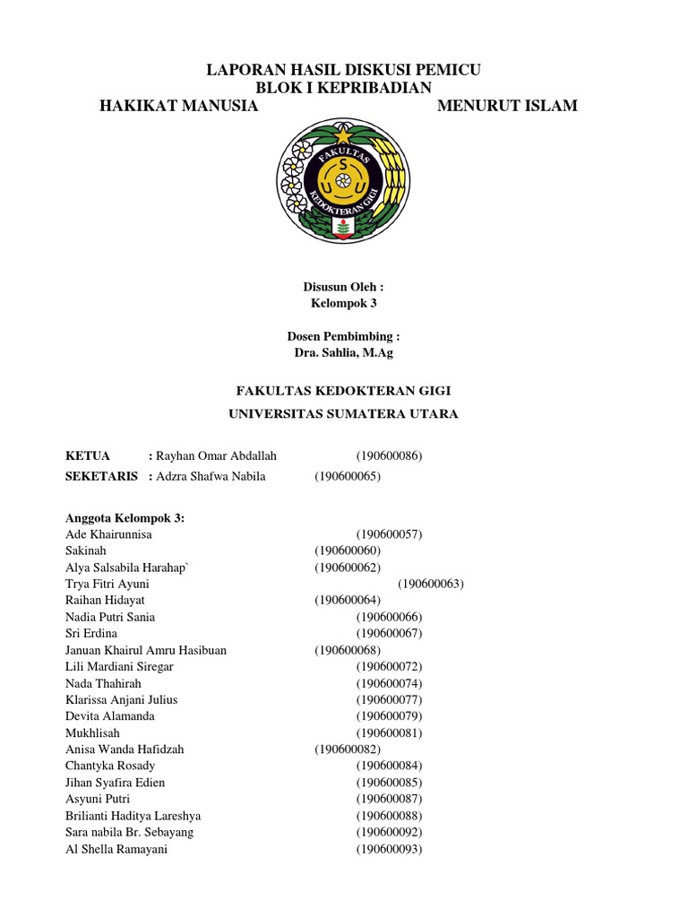Laporan Hasil Diskusi Pemicu Blok I Kepribadian Hakikat Manusia …