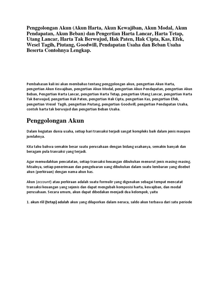 Penggolongan Akun Akuntansi.docx - Pembagian Akuntansi Akun(account atau perkiraan adalah suatu formulir yang digunakan sebagai tempat mencatat | Course Hero