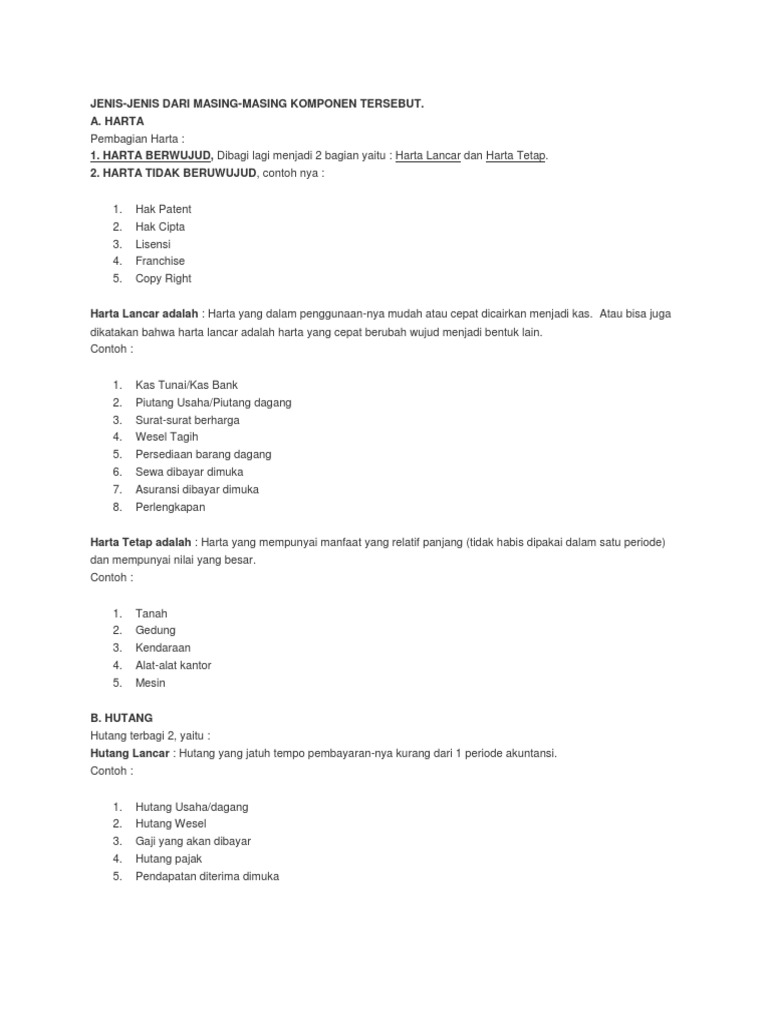 Contoh Harta Tetap Dan Harta Lancar - Bagikan Contoh