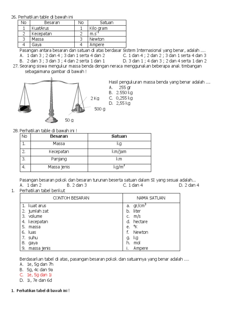 perhatikan hasil pengukuran massa yang dilakukan seorang siswa …