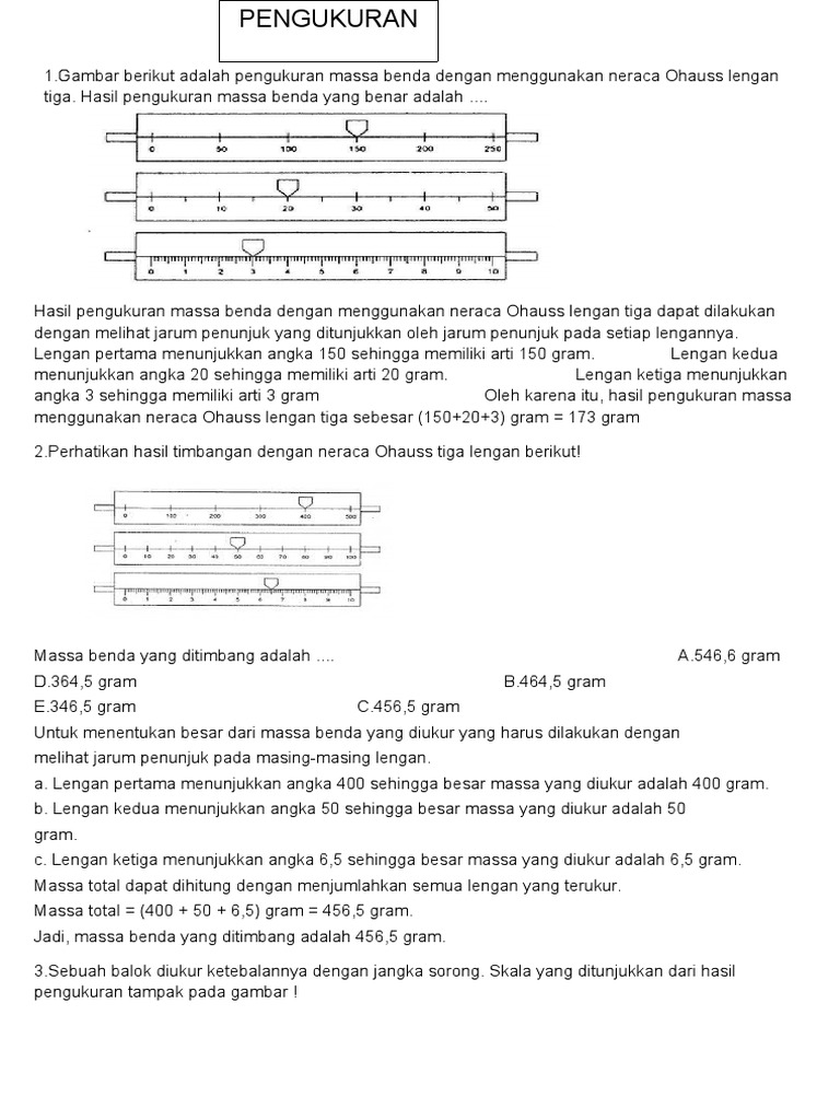 Contoh Soal Neraca Ohaus 3 Lengan | Kumpulan Soal pelajaran 7