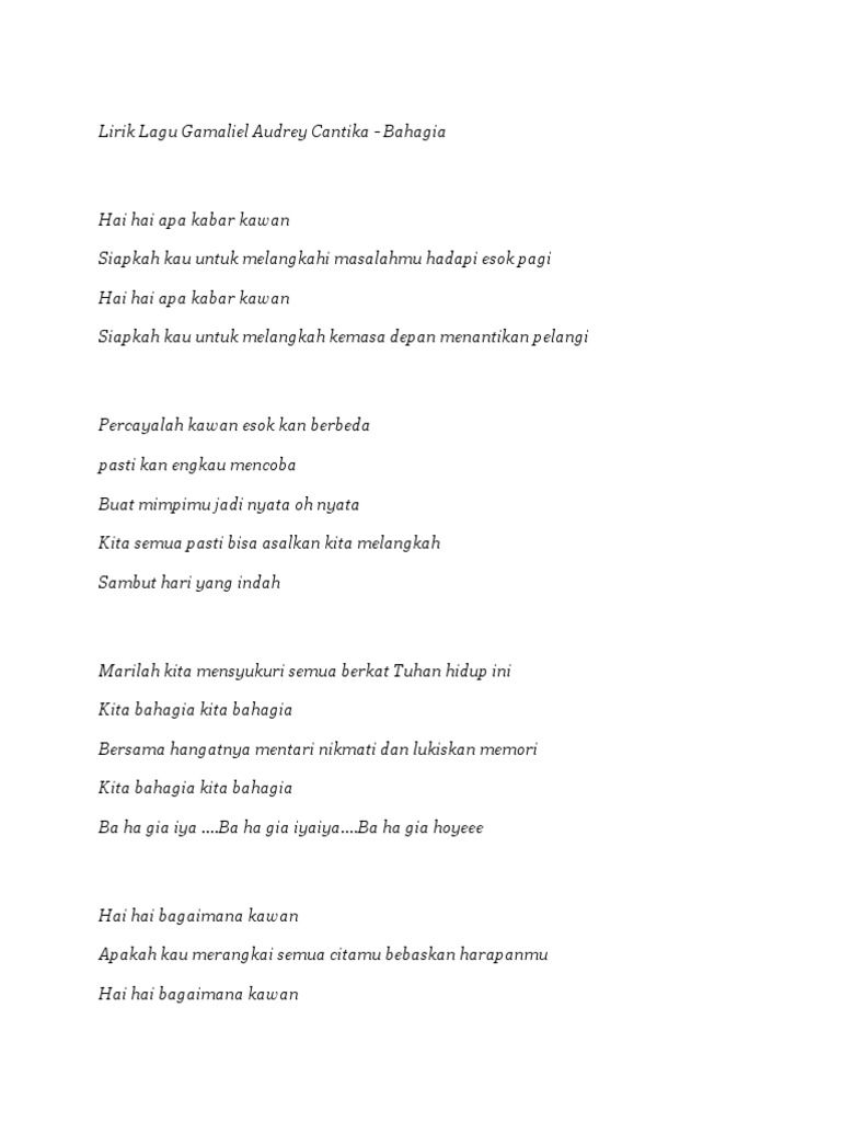 Bahagia Lyrics - GAC (Gamaliél Audrey Cantika) - Only on JioSaavn