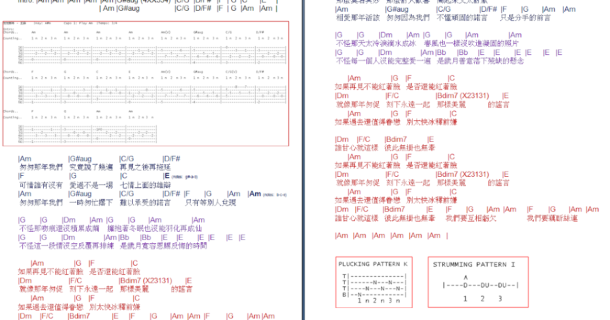 TalkingChord.com: 王菲- 匆匆那年(吉他谱Chords)