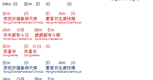TalkingChord.com: 香港群星- 祝寿歌(吉他谱Chords)