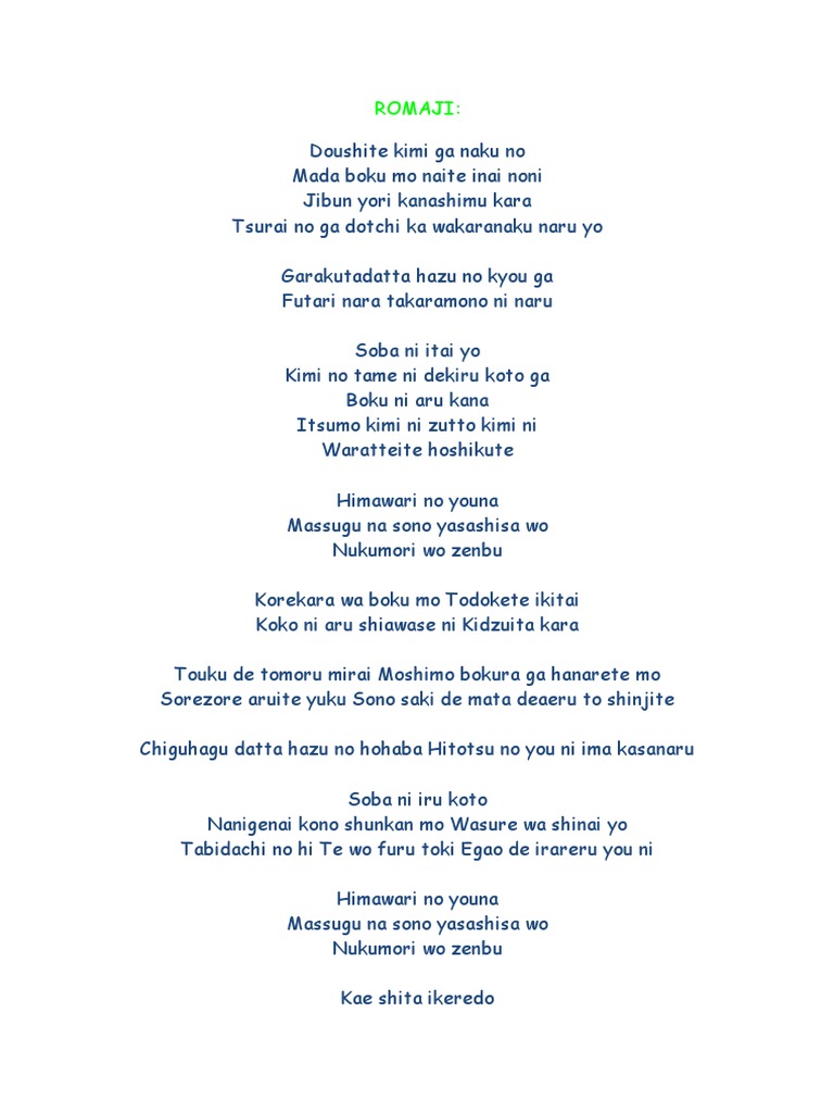 Lirik Lagu Himawari Mo Yakusuko