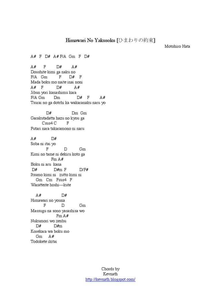 Chord Guitar Motohiro Hata - Himawari no yakusoku … - YourMinipedia