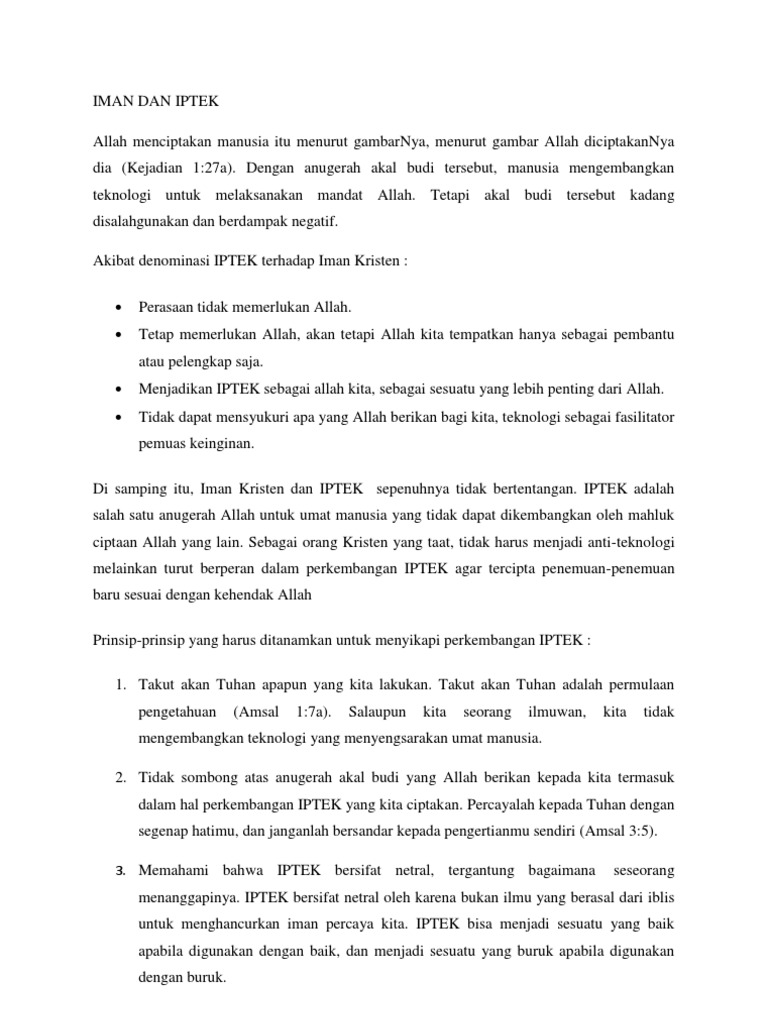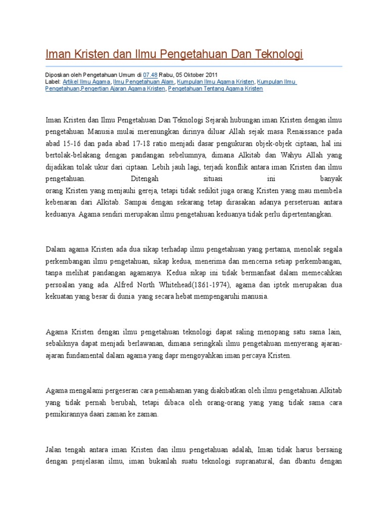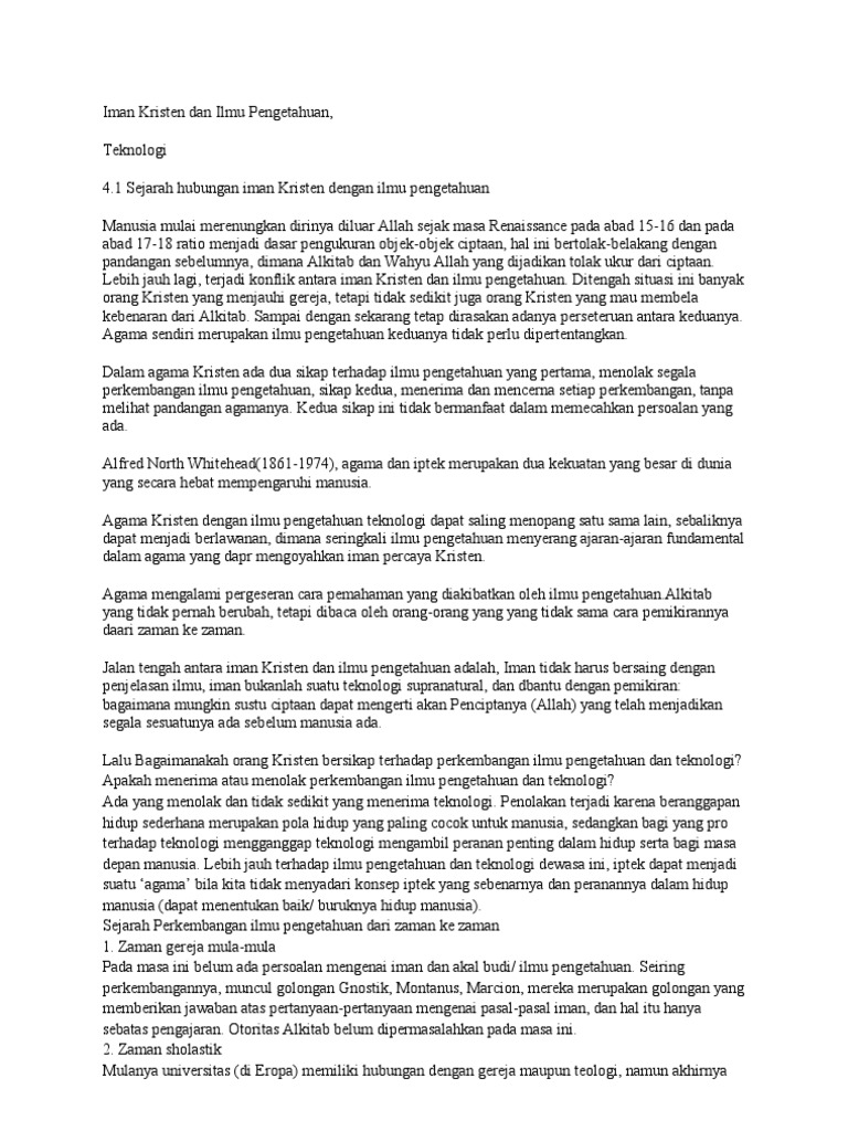 DOC) Pandangan Agama Kristen Terhadap Ilmu Pengetahuan & Perkembangan Teknologi | maike ike - Academia.edu