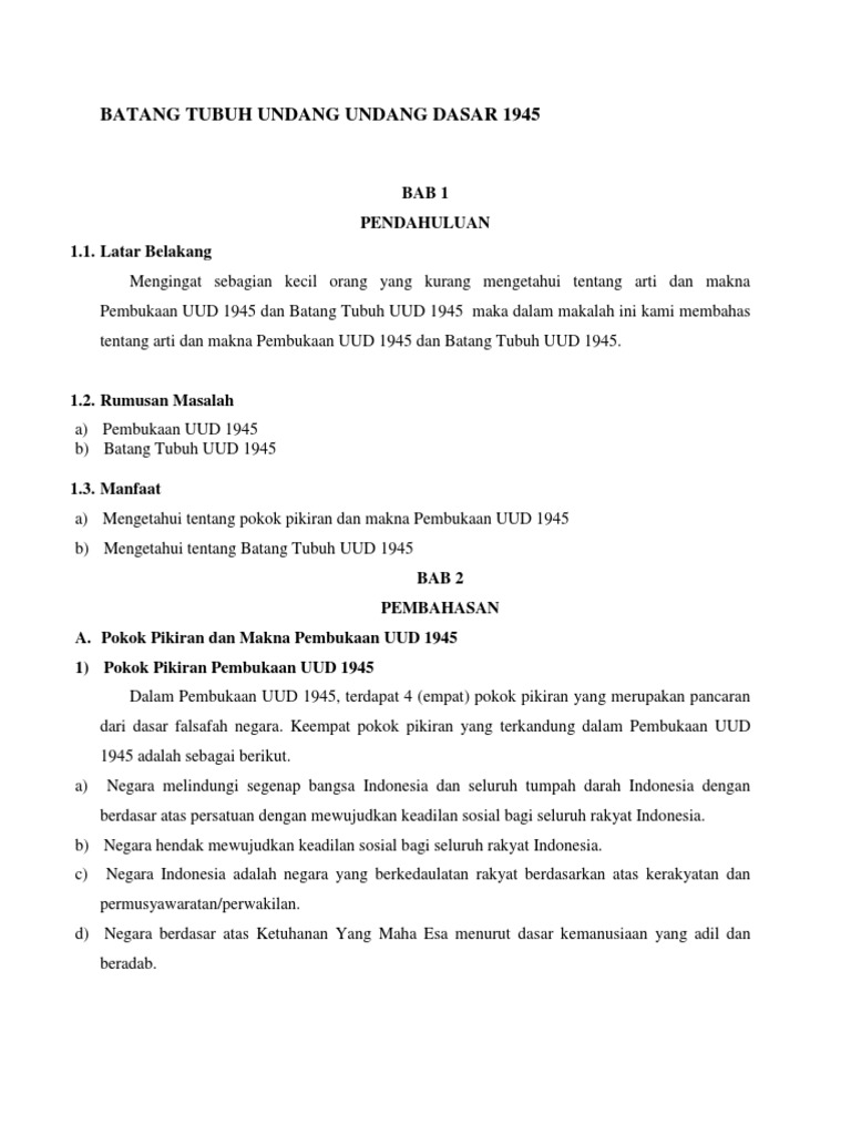 Batang Tubuh UUD 1945 ⋆ DOC | PDF ⋆ Download Contoh Makalah Lengkap