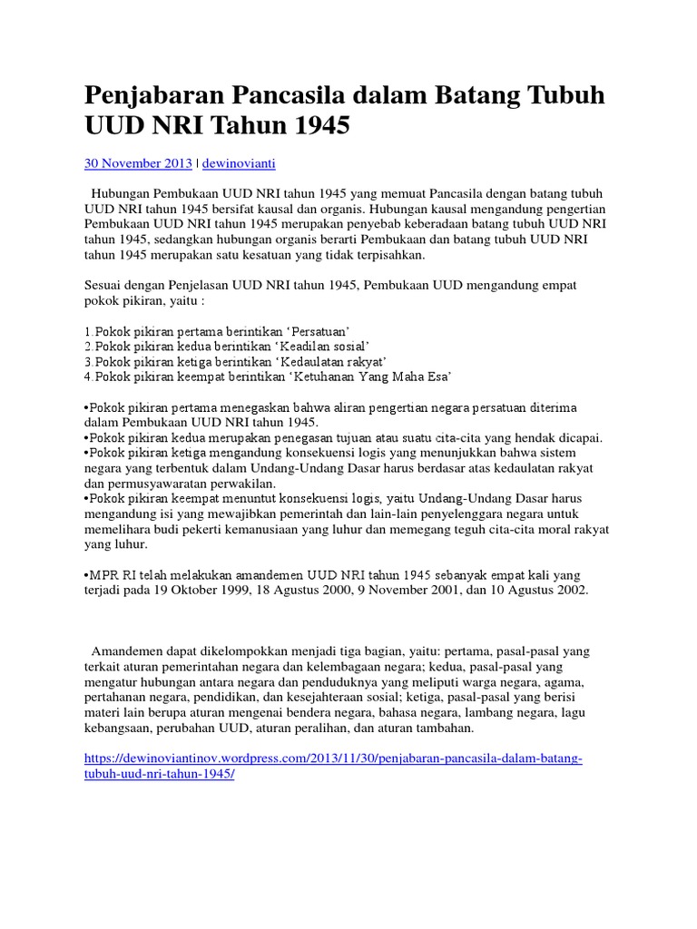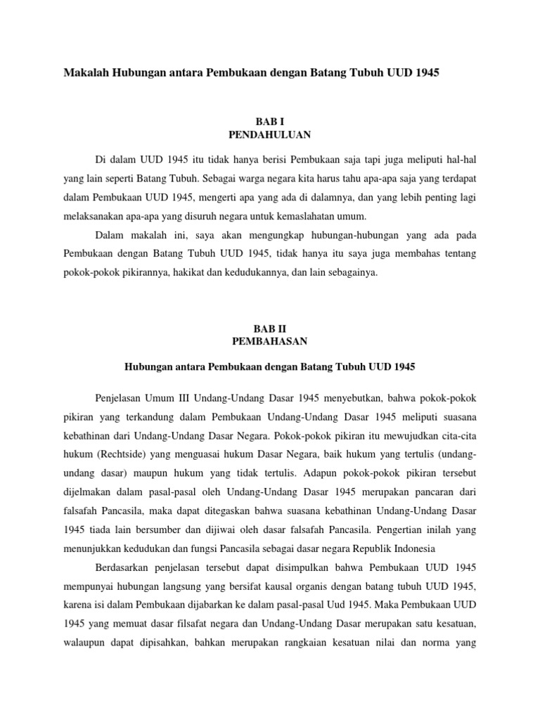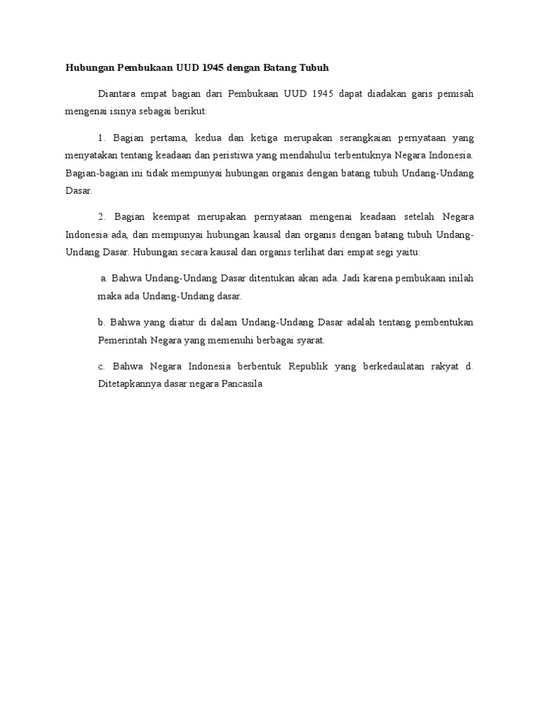 DOC) Hubungan Antara Pembukaan dengan Batang Tubuh UUD 1945 | susi …