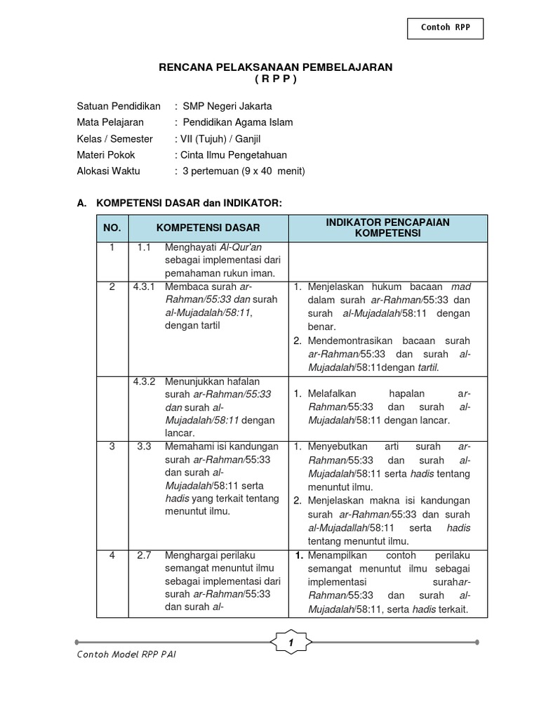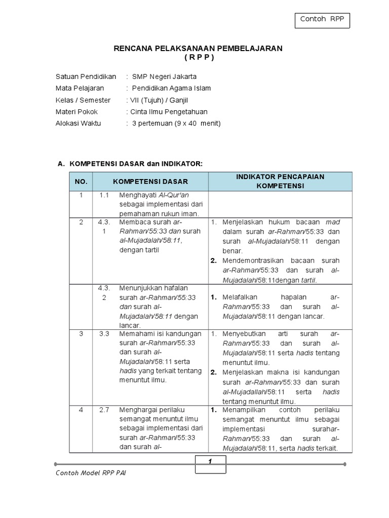 Contoh Rpp Pai 1