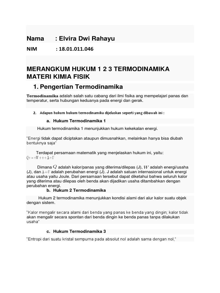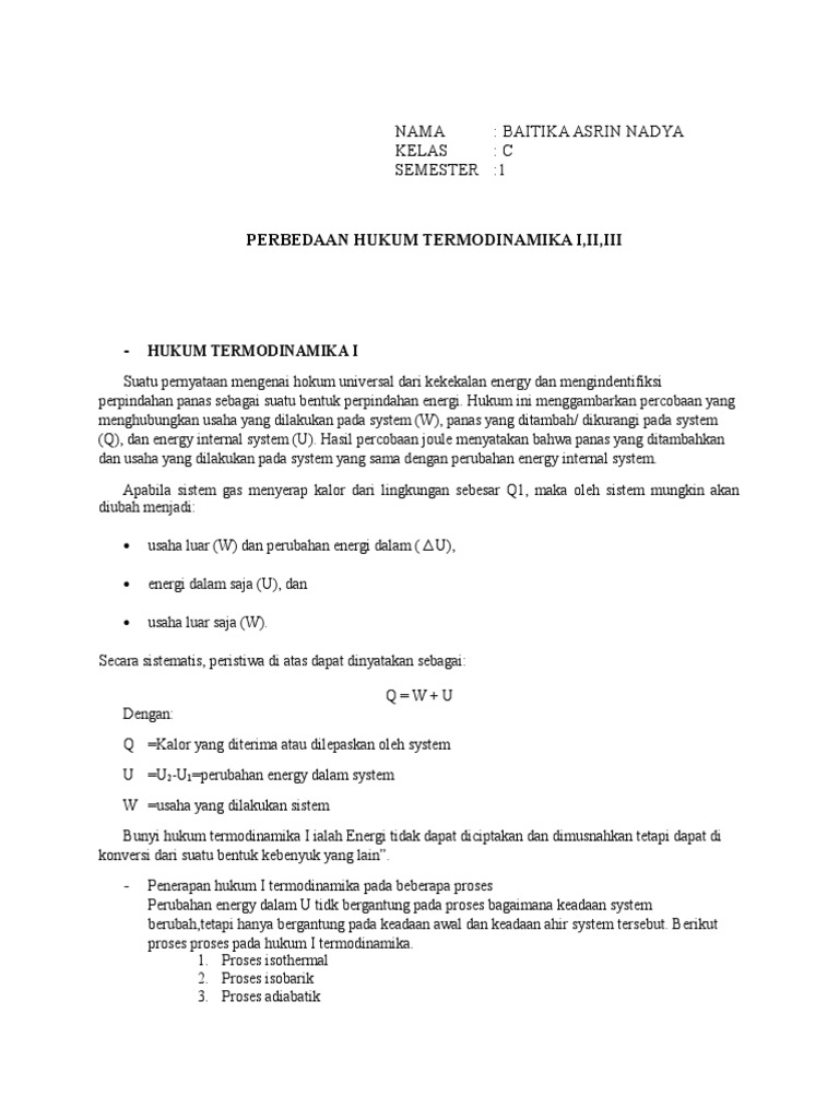 Hukum Thermodinamika - Explanation - StuDocu