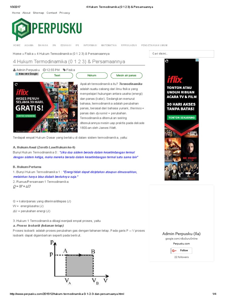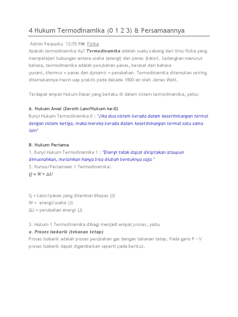 4 Hukum Termodinamika (0 1 2 3) & Persamaannya: A. Hukum Awal …