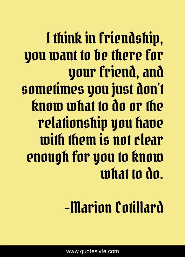 I think in friendship, you want to be there for your friend, and …