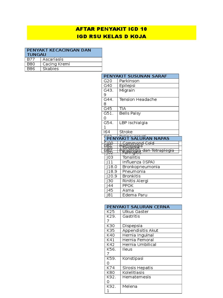 Daftar Penyakit Icd 10 Igd