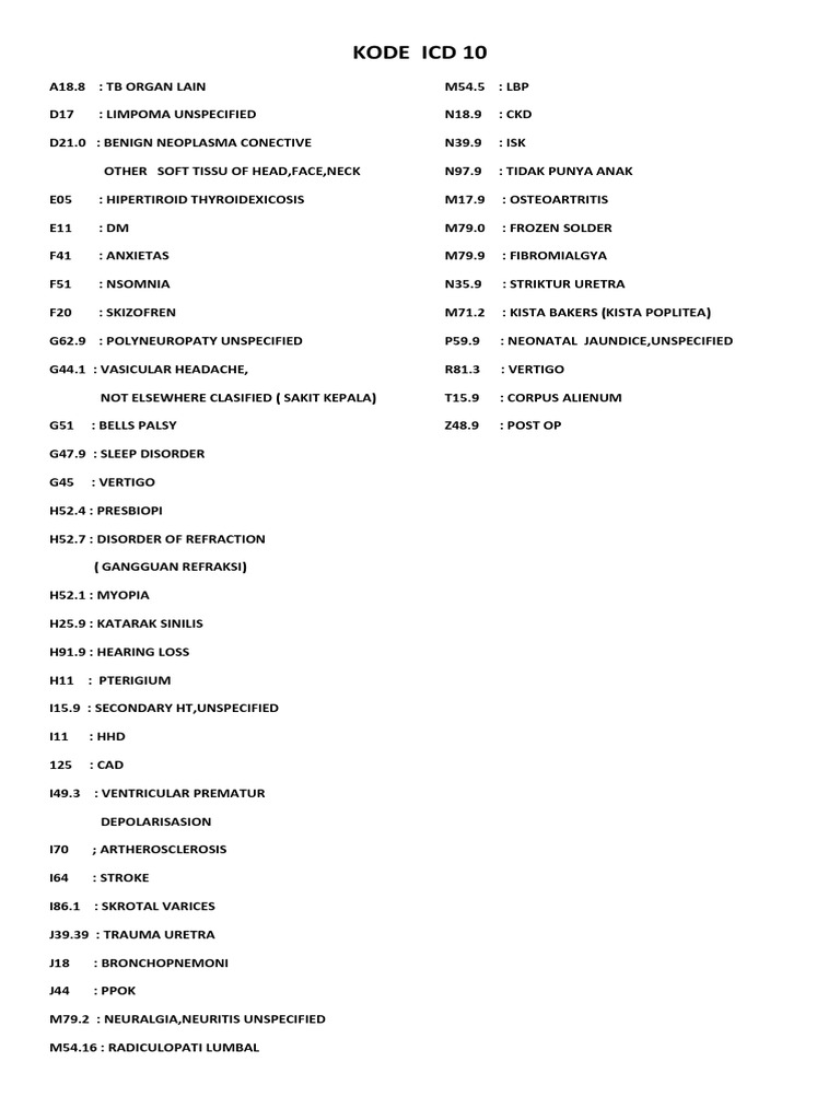 Kode Icd 10 Bp Umum Pkms Sukagalih