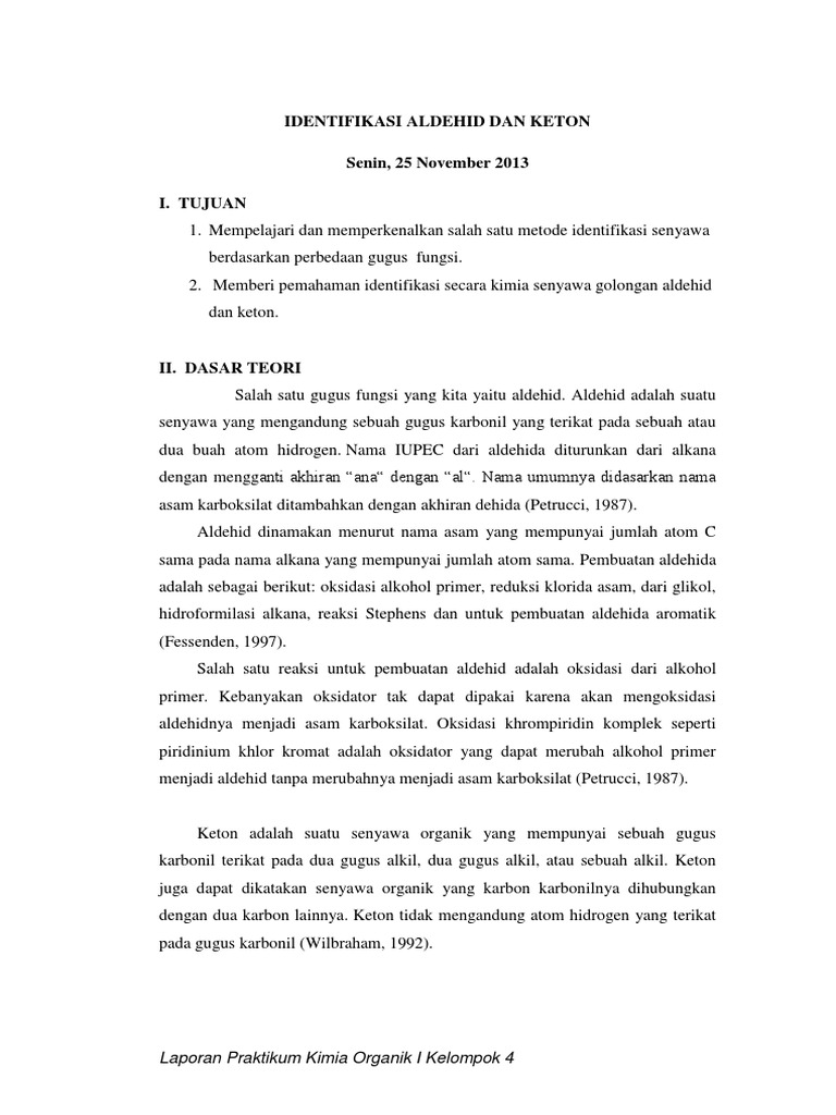 Laporan Praktikum Identifikasi Gugus Fungsi Karbonil Pada Aldehid …