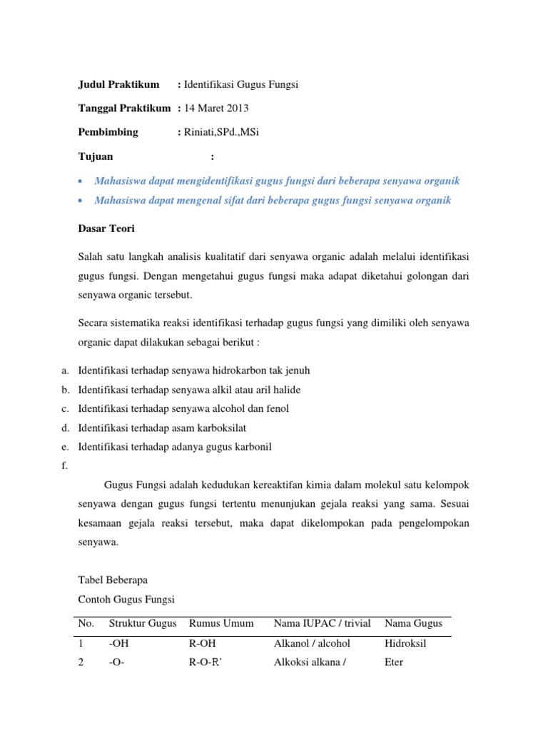 DOC) laporan praktikum identifikasi gugus fungsi dan senyawa …