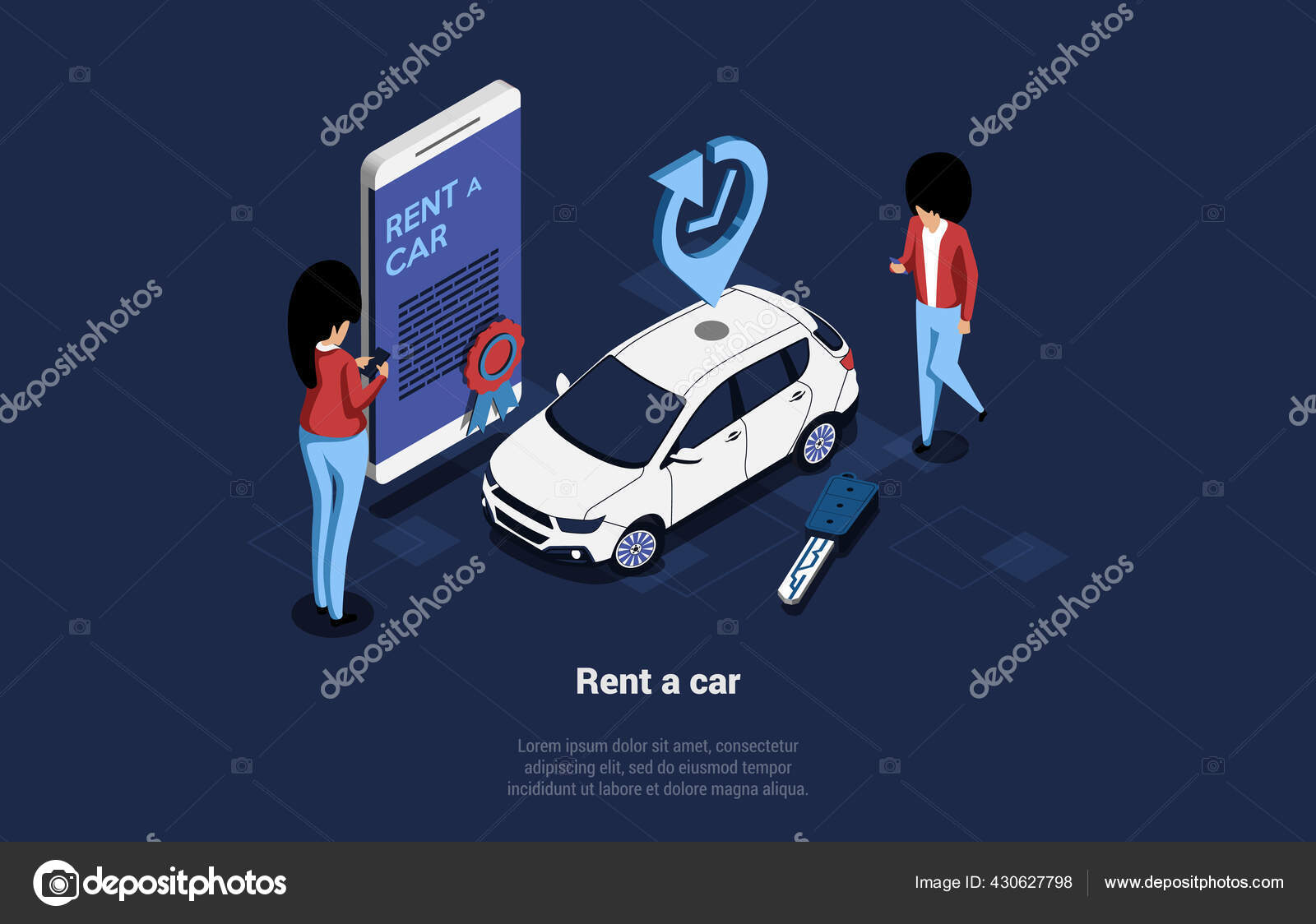 Car Renting Service, Mobile Application Conceptual Isometric …