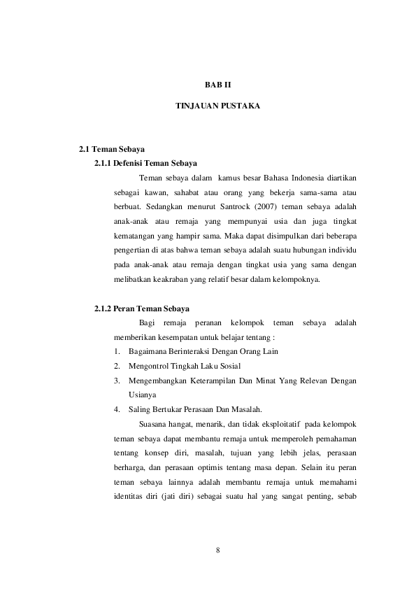 DOC) BAB II TINJAUAN PUSTAKA 2.1 Teman Sebaya 2.1.1 Defenisi Teman …