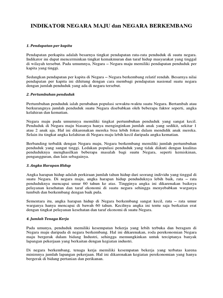 Indikator Negara Maju Dan Negara Berkembang