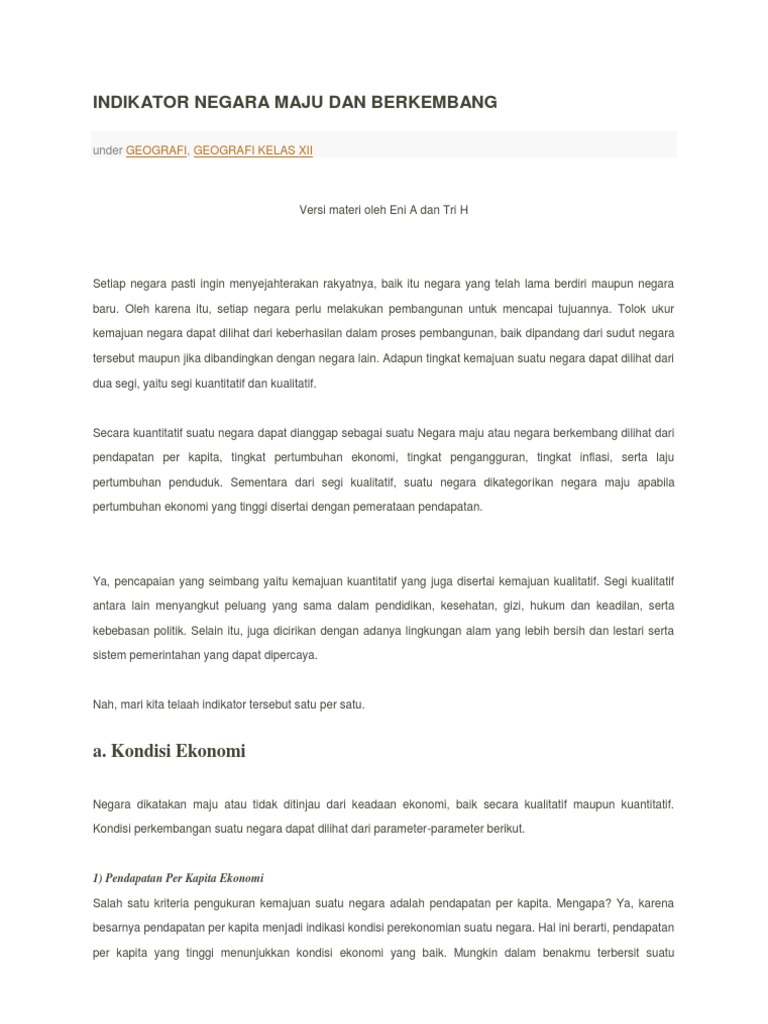 DOC) Indikator Negara Maju dan Berkembang | anita yulianti - Academia.edu