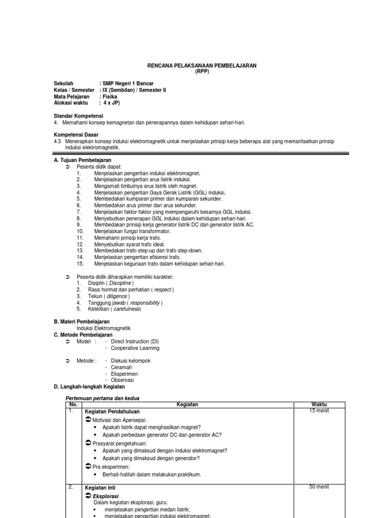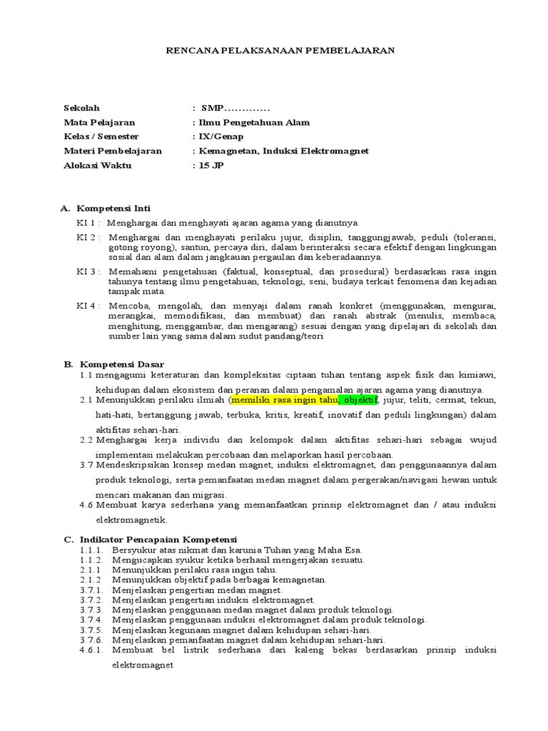 RPP SMP Kelas IX Materi Induksi Elektromagnetik + LKS
