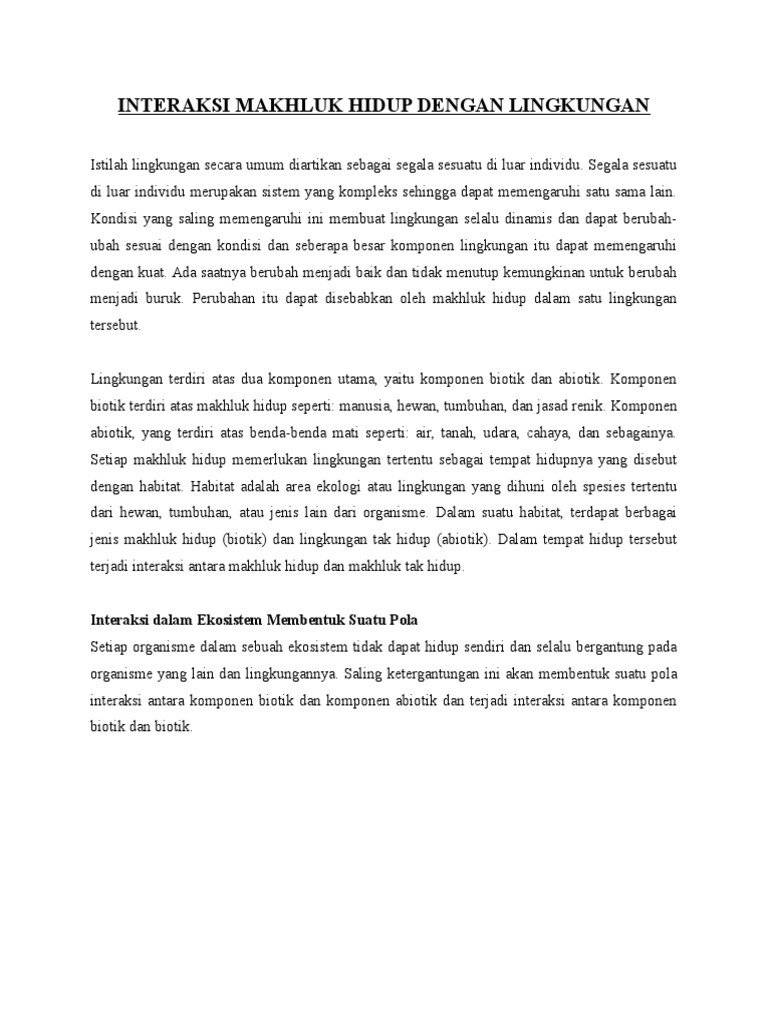 Rangkuman Materi Interaksi Makhluk Hidup dengan Lingkungannya SMP …