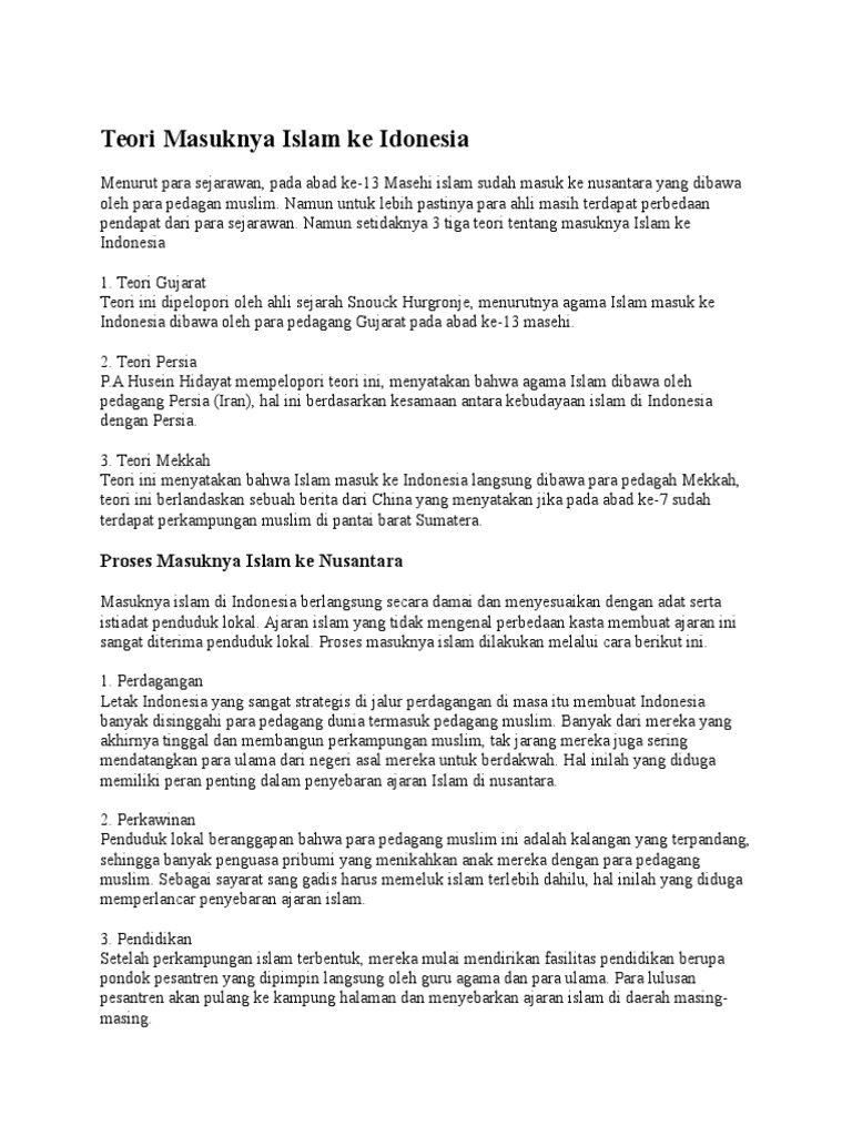 Penjelasan teori teori masuknya islam ke indonesia (Ms.Word)