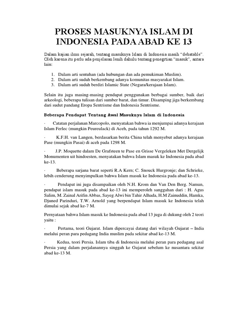 Proses Masuknya Islam Di Indonesia Pada Abad Ke 13