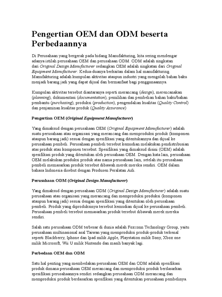 Arti OEM (Original Equipment Manufacture) dan Pengertian ODM
