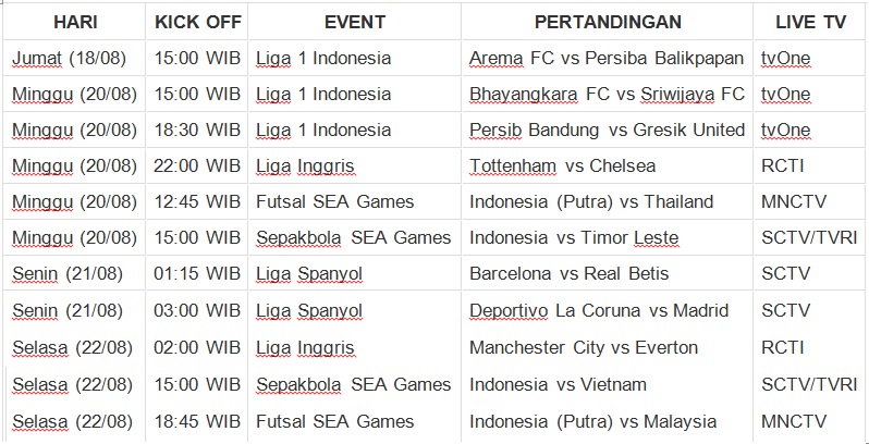 JADWAL BOLA MALAM HARI INI LIVE DI TV RCTI, SCTV, MNCTV DAN …